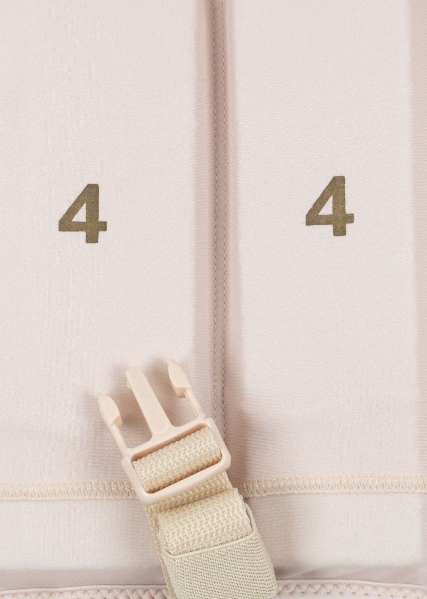 Het zwemvest heeft een stevige rits aan de voorkant en een veiligheidsgordel tussen de benen, zodat het vest niet kan afglijden. We raden aan het vest te dragen over zwemkleding die armen en benen bedekt voor optimaal comfort en bescherming tegen huidirritatie.
