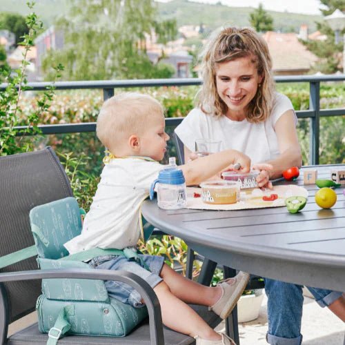 • Universeel (op iedere stoel te bevestigen) • Verhoging van 10 cm • Uiterst compact in ingeklapte toestand • Grote, afsluitbare opbergruimte met vakken in de zitting • Eenvoudig te vervoeren / Als rugzakje te dragen • Eenvoudig te installeren (2 riempjes voor de zitting / 1 voor de rugleuning) • 3-punts veiligheidsgordel • In de machine te wassen (30°)