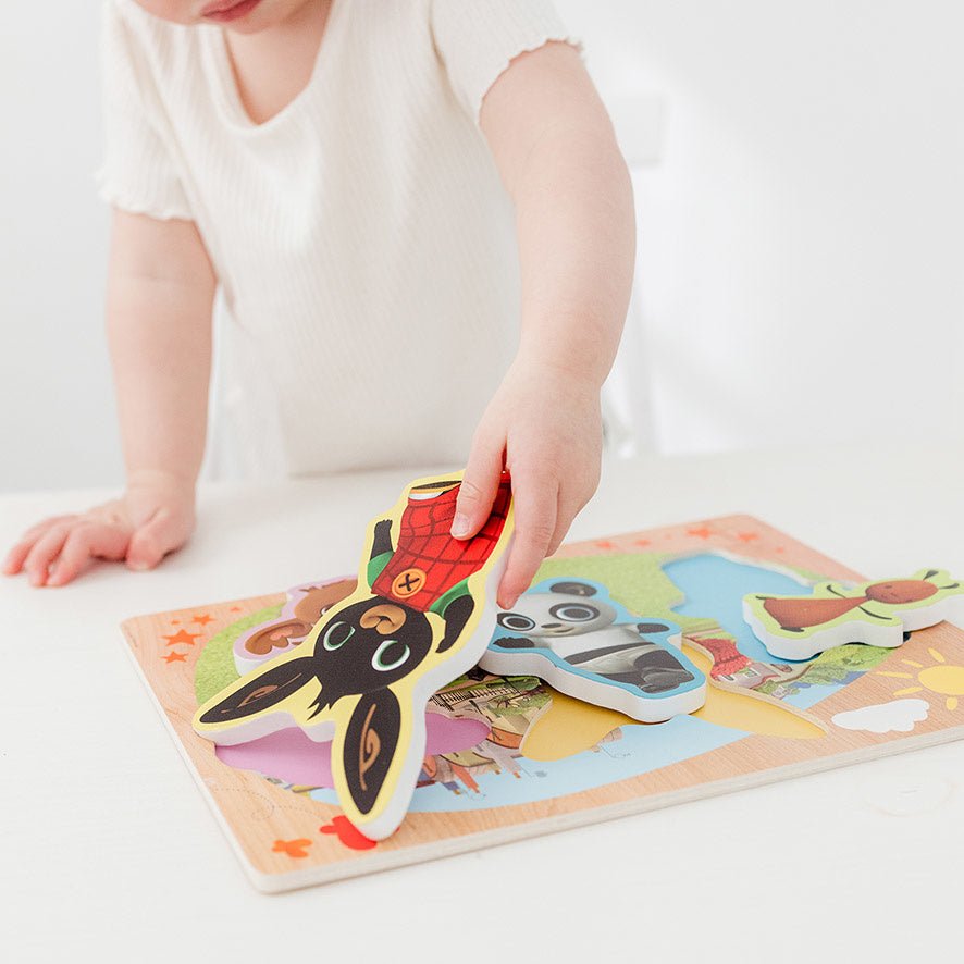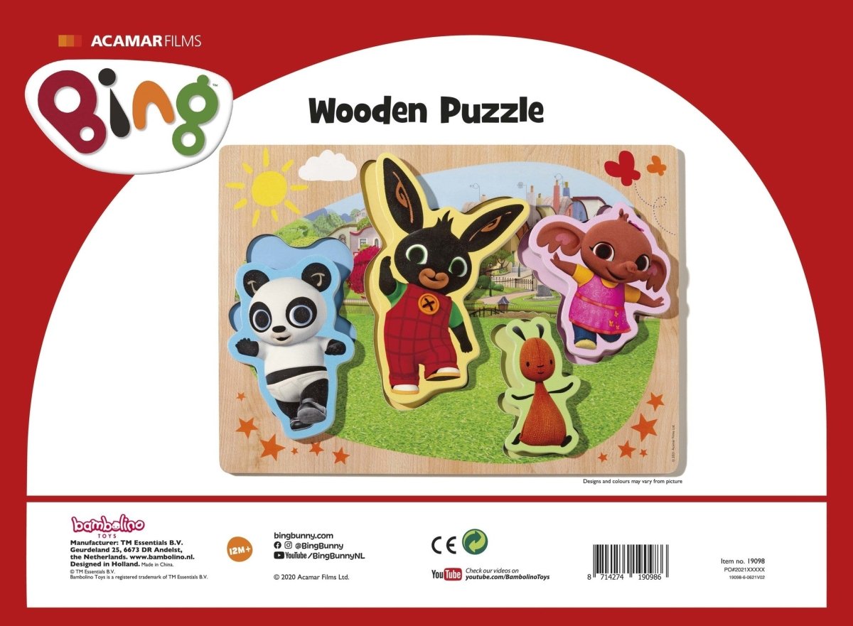 Deze houten leerzame houten Bing puzzel is uitstekend geschikt voor de allerkleinste handjes. De 4 grote houten stukken helpen je kind bij het leren van een aantal belangrijke vaardigheden, zoals waarnemen, ordenen en sorteren op kleur. Daarnaast wordt de fijne motoriek getraind. Lukt het al om de puzzelstukjes op de juiste plek te leggen?