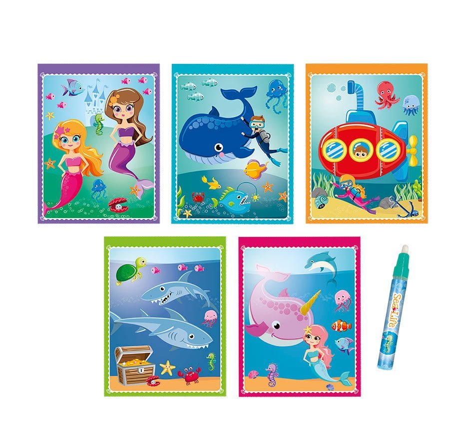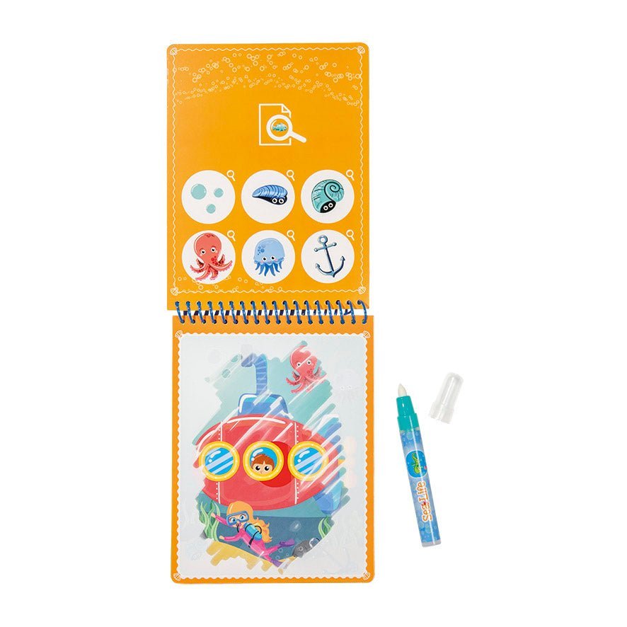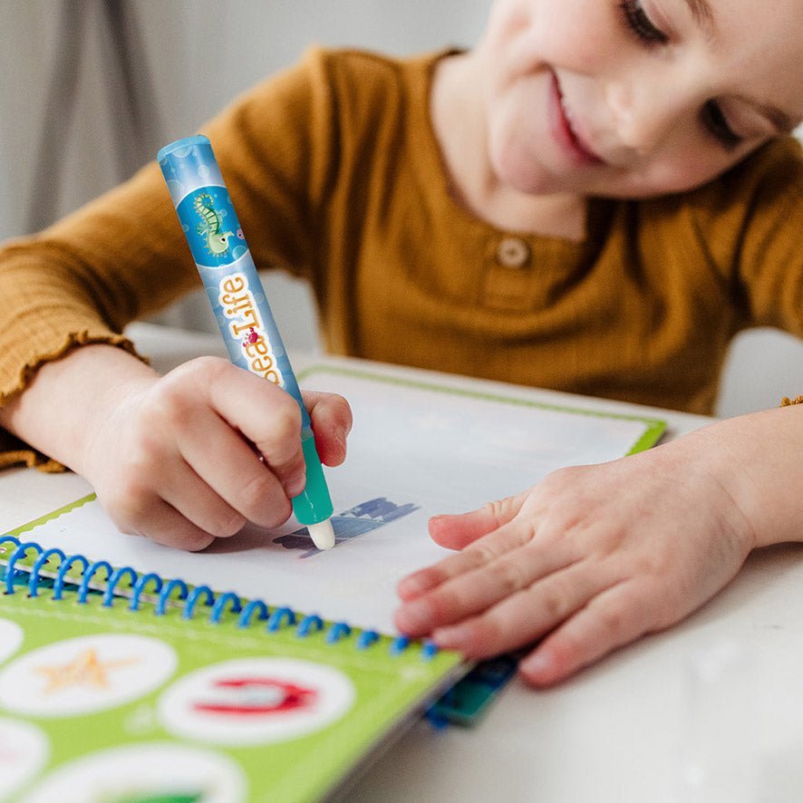 Ontdek hoe creatief je kunt zijn met water en breng de onderwaterwereld tot leven. Ideaal voor kleine diepzee duikers, dierenvrienden en toekomstige kunstenaars! Vul de bijgeleverde speciale pen met water en begin met tekenen. Wanneer water op het papier terecht komt verschijnen er de mooiste tekeningen van al jouw favoriete wilde dieren. Als het papier opdroogt kun je de vijf tekeningen weer opnieuw maken, waardoor je keer op keer plezier hebt. Handig voor thuis en onderweg!