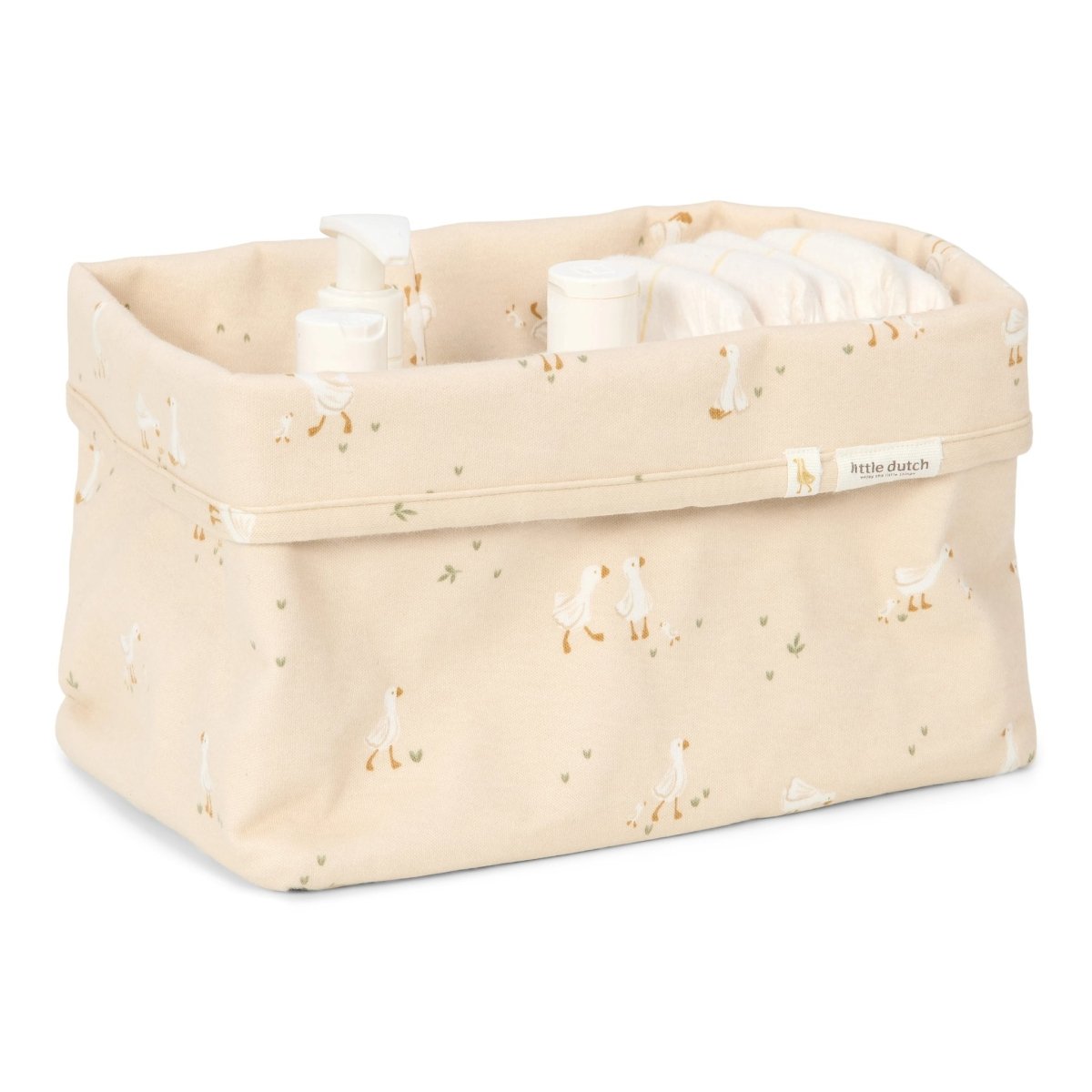 Geen rondslingerende luiers, tubes en flesjes meer: dit Little Dutch commodemandje houdt de verschoontafel netjes en georganiseerd! De Little Dutch commodity mand is mooi afgewerkt en biedt een opbergplek voor alle producten die je dagelijks nodig hebt voor de verzorging van je baby. Een mooi accessoire voor de babykamer. Deze uit de Little Goose collectie in mooie rustige kleur is verrijkt met lieve ganzenprint. Ook verkrijgbaar in andere maten en vormen.