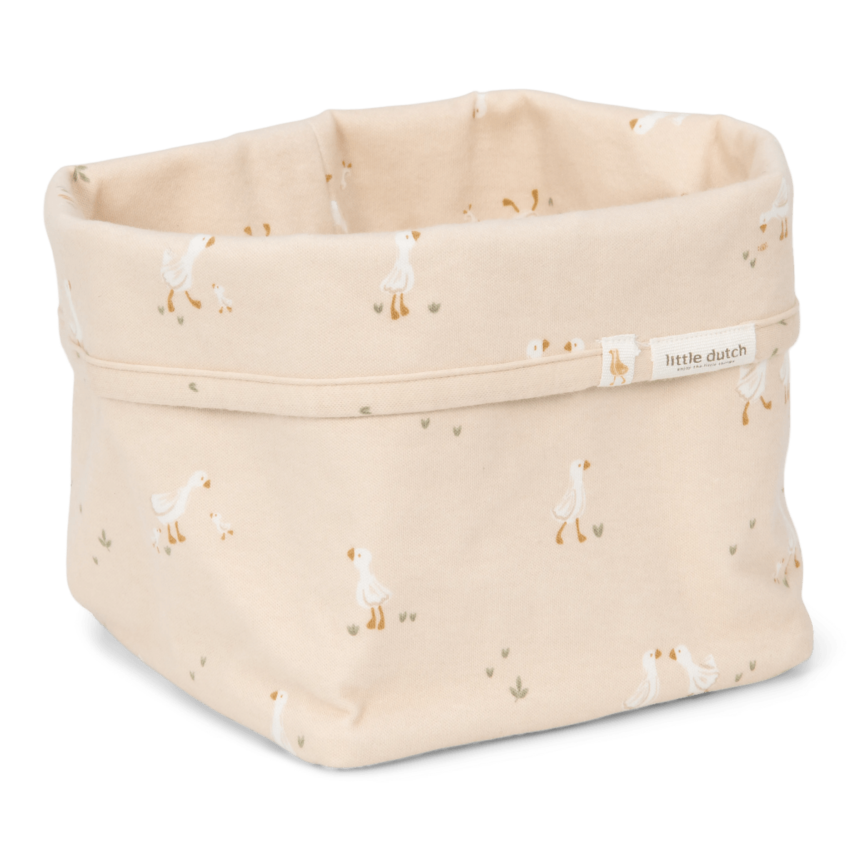 Geen rondslingerende luiers, tubes en flesjes meer: dit Little Dutch commodemandje houdt de verschoontafel netjes en georganiseerd! De Little Dutch commodity mand is mooi afgewerkt en biedt een opbergplek voor alle producten die je dagelijks nodig hebt voor de verzorging van je baby. Een mooi accessoire voor de babykamer. Deze uit de Little Goose collectie in mooie rustige kleur is verrijkt met lieve ganzenprint. Ook verkrijgbaar in andere maten en vormen.