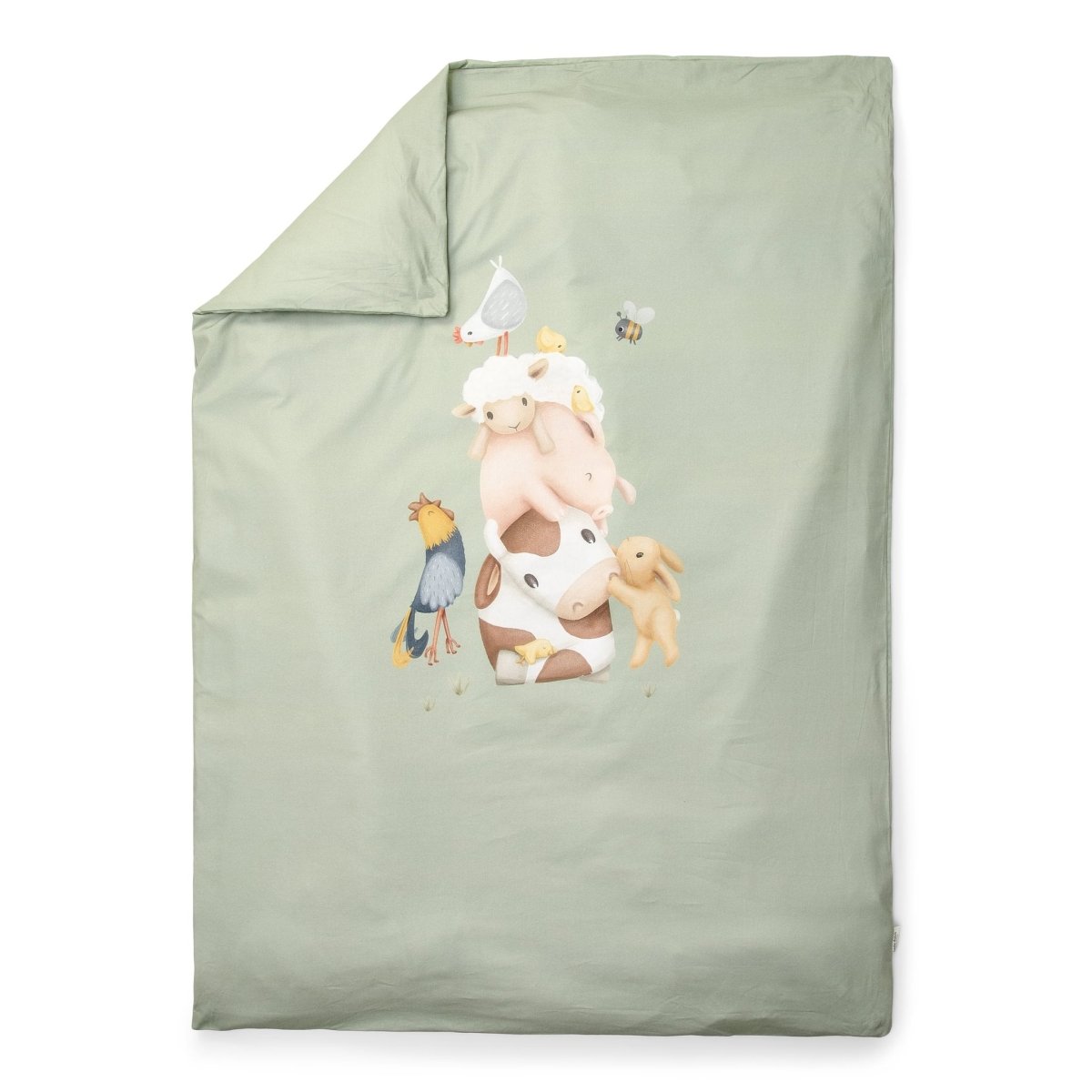 Geef de kinderkamer een stijlvol en gezellig tintje met een prachtig opgemaakt bed. Dit dekbedovertrek neemt je kleintje mee naar dromerige boerderijavonturen. Het is gemaakt van 100% biologisch katoen, voelt heerlijk zacht aan en is ademend, perfect voor een comfortabele nachtrust. De effen groene kleur, gecombineerd met een lief boerderijtafereel, zorgt voor een speelse en rustgevende look. Het dekbedovertrek heeft een afmeting van 110 x 140 cm en een bijpassende kussensloop van 40 x 60 cm. Beide zijn zorgvuldig afgewerkt en ontworpen om je kindje heerlijk te laten slapen. Een perfecte keuze voor kleine boerderijliefhebbers!