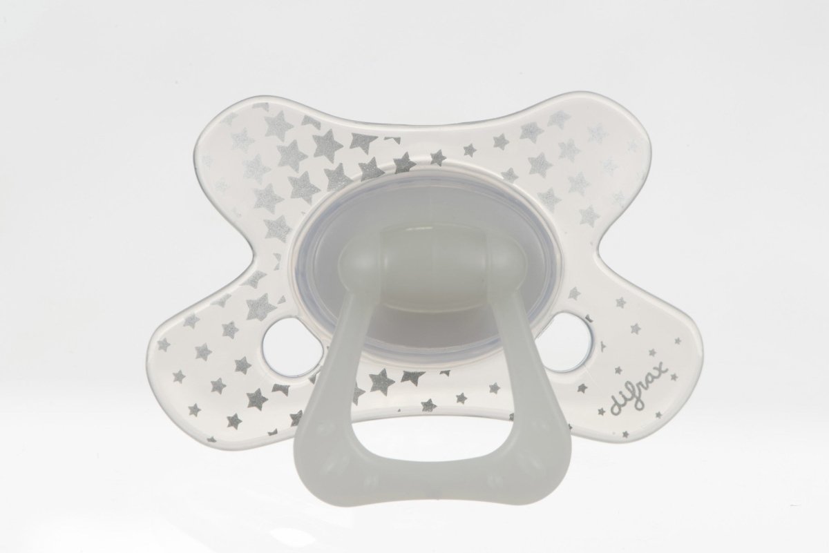 De Difrax fopspeen is herkenbaar aan het vlindervormige schildje en de hippe printjes. Samen met een team van medische experts ontwikkelde Difrax 5 maten fopspenen. Het schildje groeit mee met de vorm van het gezichtje en het zuiggedeelte wordt massiever naarmate de zuigbehoefte toeneemt. De fopspeen van Difrax is eerste keus van heel veel baby’s. Het zuigen op een fopspeen maakt je kindje rustiger en geeft een gevoel van veiligheid, vertrouwen en geborgenheid. Je baby’s eerste keus. Baby’s hebben de eerste vijf maanden een grote zuigbehoefte. Dit is heel natuurlijk: zuigen brengt de melkproductie bij de moeder op gang. Je baby regelt zo dus dat er genoeg voeding is. Een fopspeen vervult die zuigbehoefte en is tandvriendelijker dan duimen. Een fopspeen is ook hygiënischer en zelfs veiliger. Studies tonen aan dat de kans op wiegendood verkleint als je baby gaat slapen met een fopspeen. En, ook heel belangrijk, stoppen met een fopspeen is makkelijker dan stoppen met duimzuigen.