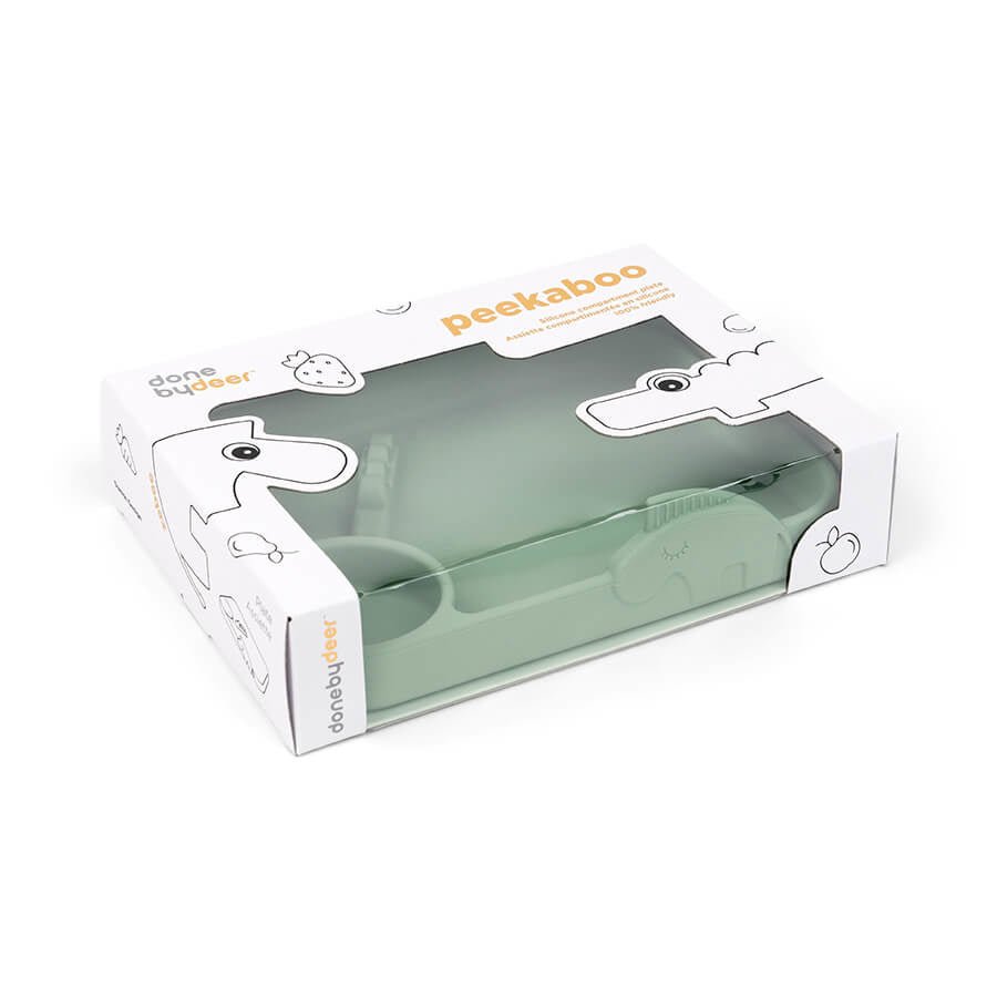 Kiekeboe, het is tijd om te eten! Het Peekaboo-vakjesbord is perfect voor kieskeurige eters. Scheid het eten en laat de leuke zebra en de coole krokodil de nieuwsgierigheid van je kleintje prikkelen als ze uit het bord gluren. Het schattige kinderbordje is gemaakt van voedselveilig siliconen, waardoor het onbreekbaar is en anti-slip en easy-grip functies heeft. Het bord is vaatwasmachinebestendig en geschikt voor gebruik in de oven, magnetron en vriezer. De kleintjes zullen genieten van de leuke dieren tijdens het eten - laat Zebee het eten bewaken en Croco een duik nemen. Het groen gekleurde bord past bij de andere items in de Peekaboo serviescollectie en is verpakt in een schattig versierde geschenkdoos.