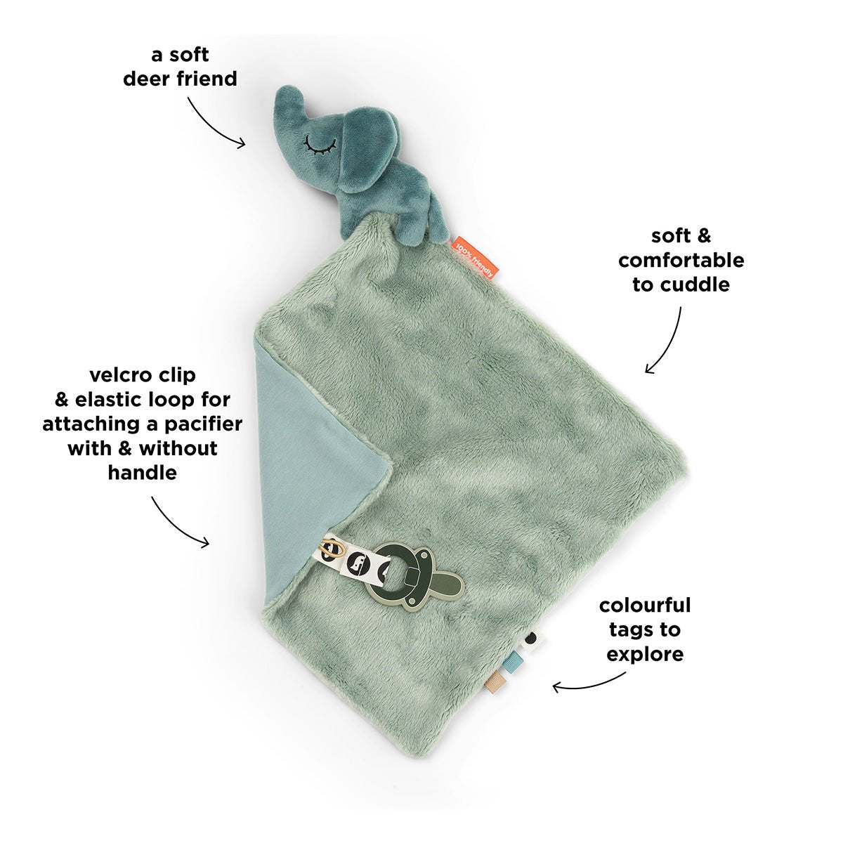 De Comfort Blanket Elphee is het perfecte knuffeldoekje voor baby's die houden van zachtheid en veiligheid. Elphee’s vriendelijke olifantenvorm en superzachte materialen maken dit doekje een ideaal maatje voor dutjes, onderweg of gewoon voor extra comfort. Licht, knuffelbaar en ontworpen voor kleine handjes.