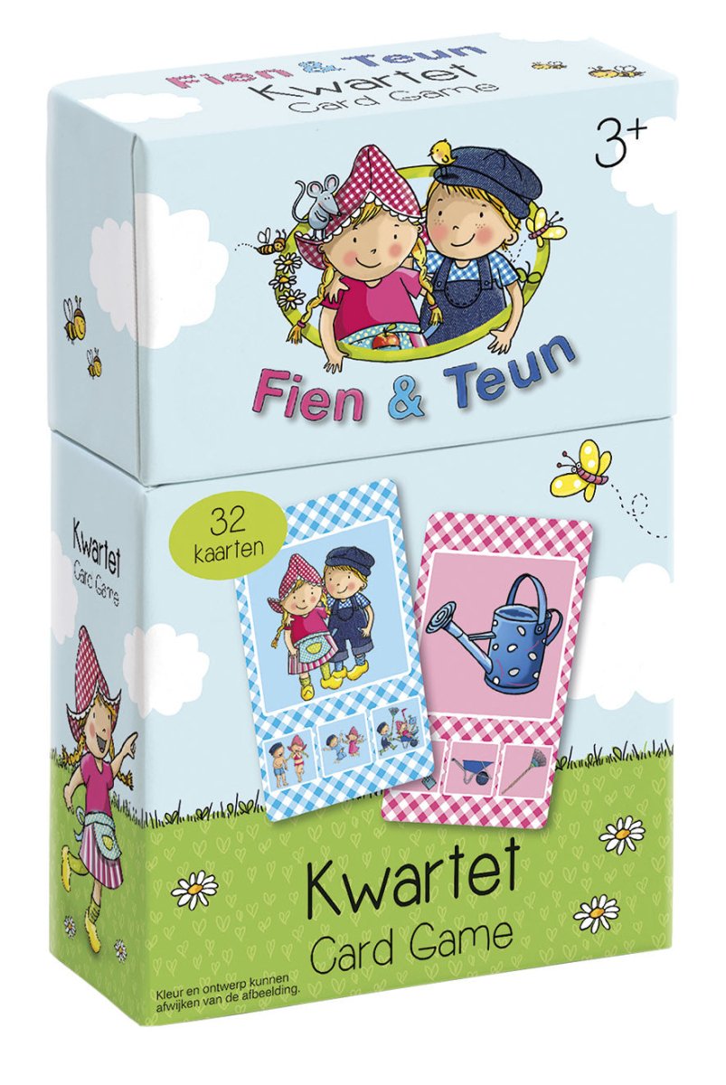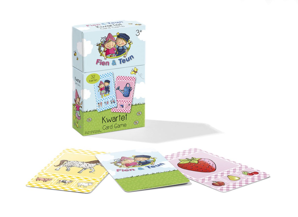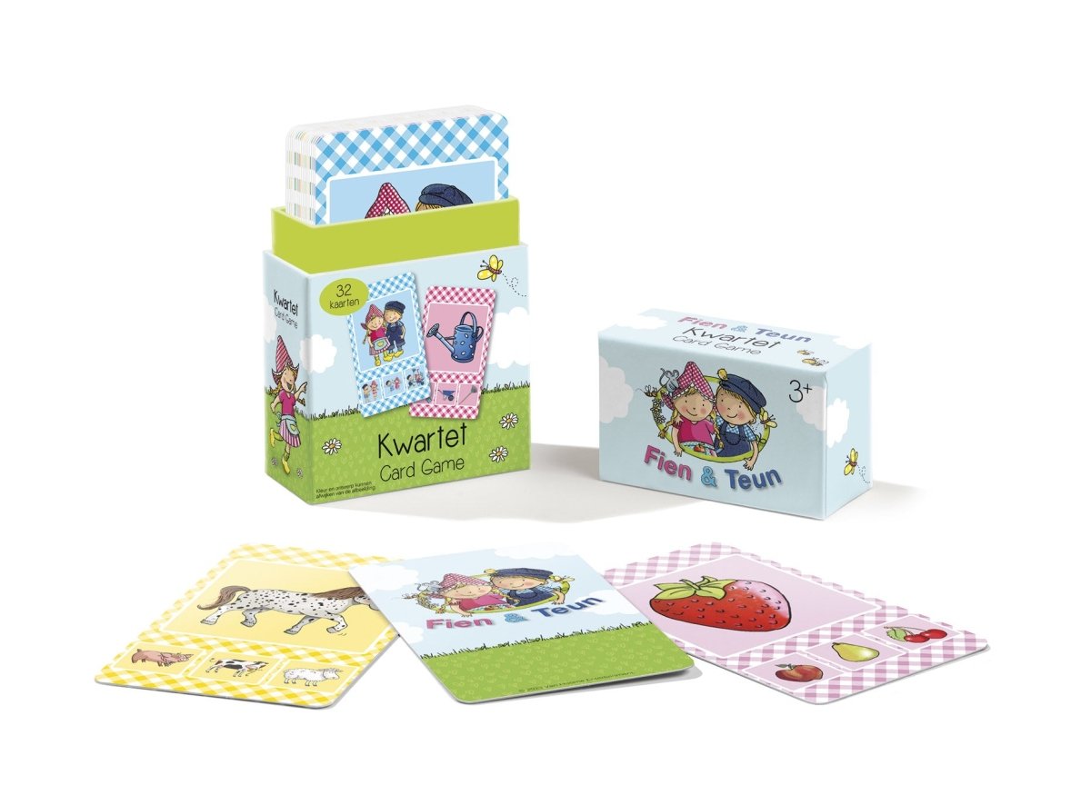 Heb jij voor mij… de klompen van Teun? En Fien op de pony? Kwartet! Speel het bekende kwartetspel nu in Fien & Teun thema! Vraag je medespelers naar jouw ontbrekende boerderijkaarten en maak je setjes compleet. Verzamel onder andere soorten groenten, fruit en boerderijdieren bij Fien en Teun op de boerderij. Het spel bevat 32 speelkaarten en is ook geschikt voor kindjes die nog niet kunnen lezen, omdat er alleen plaatjes op de kaarten staan en geen teksten. Een klassieker voor jong en oud.