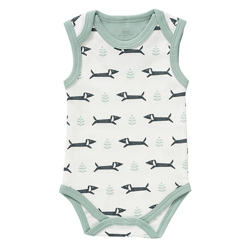 Lekker vrij bewegen in deze zachte romper zonder mouw. Een vrolijk design waar ook je baby blij van wordt. Met onderop drie drukknoopjes en aan de bovenzijde een envelop sluiting zodat de romper ook naar beneden toe uitgetrokken kan worden. De romper kan in de wasmachine op maximaal 40 graden. Gemaakt van 100% biologisch katoen. Dit product beschikt over het GOTS keurmerk.