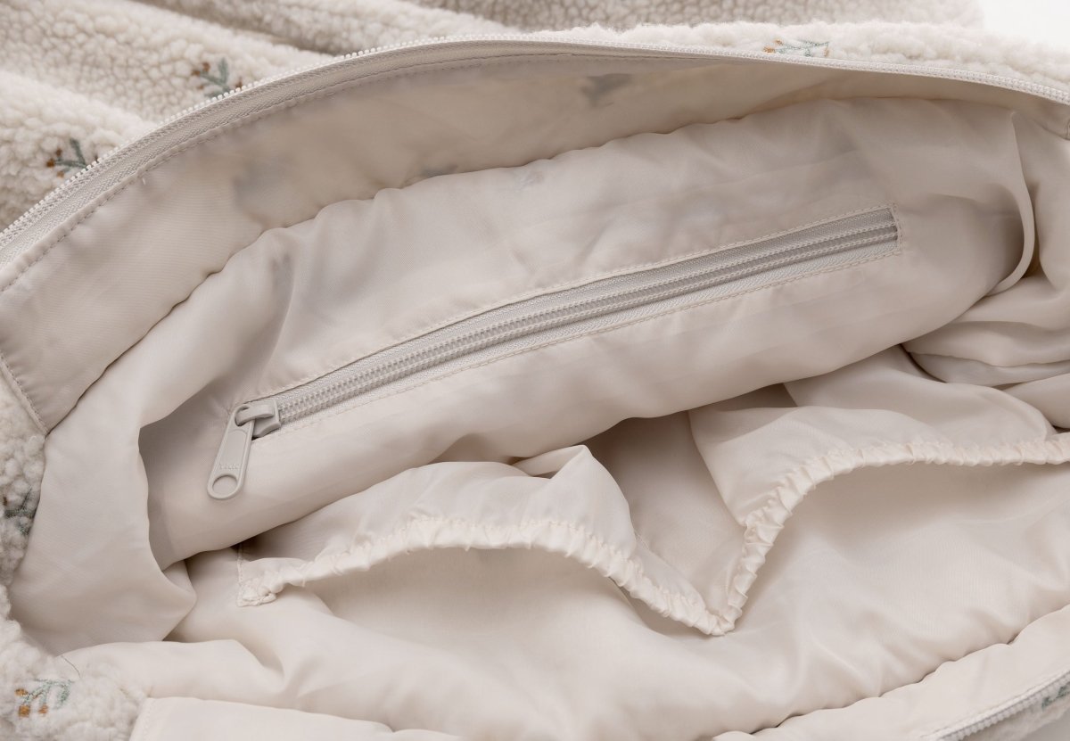 De perfect mom bag! Deze super trendy luiertas is gemaakt van mega zacht Bouclé. Natuurlijk kun je de tas ook gebruiken voor jezelf, voor het sporten of als schooltas. De tas heeft de mooie print Lovely, met bloemetjes in een dikke teddy stof. Daarnaast heb je in de binnenkant nog 2 handige opbergvakjes en wordt er standaard een verschoonmatje bijgeleverd. De luiertas sluit met een rits. De tas heeft extra lange hengsels zodat je deze niet alleen op je schouder kan dragen, maar ook cross-body of om de kinderwagen.
