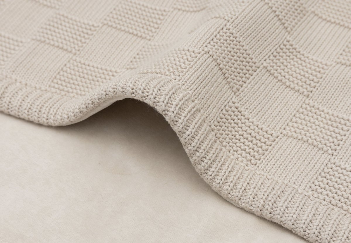 Deze deken in Milky Coffee kleur met een velvet afwerking is ideaal voor het wieg kant  van je kleintje. Het box knit patroon zorgt voor een mooi en stevig design, terwijl de velvet stof extra zachtheid biedt. Gemaakt van GOTS-gecertificeerd materiaal, biedt deze deken zowel comfort als duurzaamheid. Perfect om je kleintje lekker warm te houden tijdens het slapen.