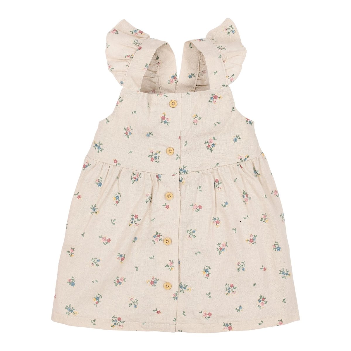 Een zomers jurkje vol charme. Dit mouwloze jurkje in Fairy Bloom is gemaakt van een geweven stof met een natuurlijke linnen look. De zachte bloemenprint maakt het jurkje extra bijzonder en perfect voor zonnige dagen vol kleine ontdekkingen.
