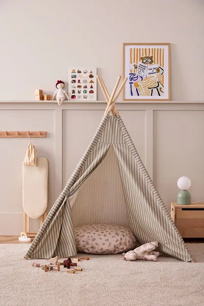 Een tipitent die iets kleiner is dan onze andere tipitenten, gemakkelijk in de kinderkamer of woonkamer te plaatsen. Is perfect als plek om te spelen of gezellig te zijn. Gemakkelijk in elkaar te zetten en weer af te breken. Het product is niet vlamvertragend omdat de chemicaliën die in de behandeling zijn opgenomen niet zijn goedgekeurd volgens de “REACH”-wetgeving.
