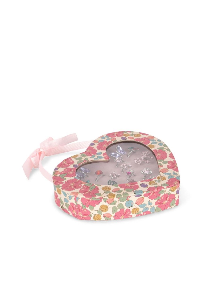 Verstelbare vingerringen voor kinderen met de kenmerkende, dromerige ontwerpen van Konges Slojd. Deze set bestaat uit 14 verschillende ringen met speelse vormen en kleuren, perfect om te mixen en matchen. De ringen worden geleverd in een prachtige, hartvormige geschenkdoos – ideaal om ze netjes in op te bergen of cadeau te geven.