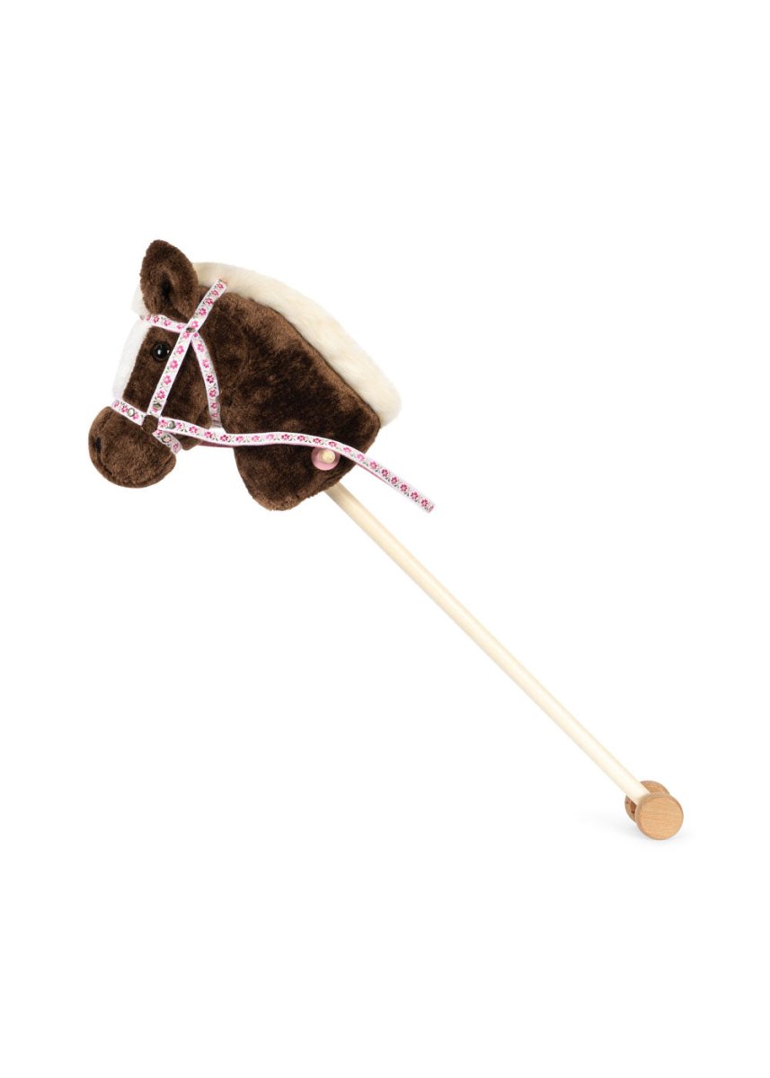 Deze lieve hobbyhorse is ontworpen voor urenlang plezier en actief spel. Het paardenhoofd is bevestigd op een houten stok met wieltjes aan het uiteinde, waardoor het eenvoudig te sturen is en kinderen zich vrij kunnen bewegen tijdens het spelen.