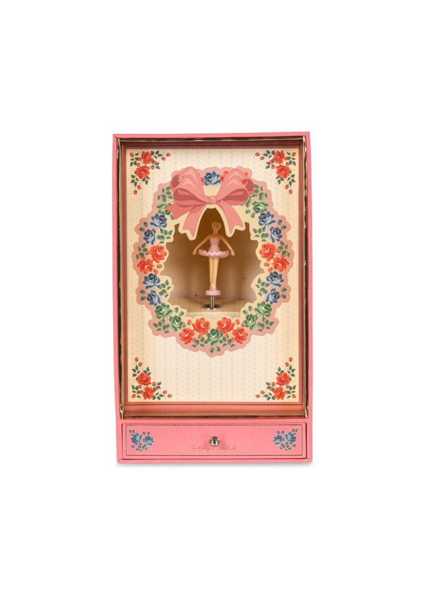 Deze lieve schatkist bevat een ballerina in vintage stijl die tot leven komt wanneer je het lipje aan de achterkant van de doos indrukt. De muziekdoos speelt een melodie en laat de ballerina draaien en bewegen, waardoor het een magische toevoeging is aan elke kinderkamer.