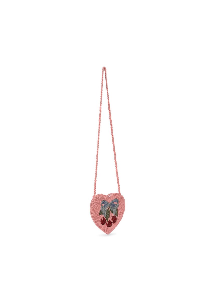 Schattig hartvormig schoudertasje, handgemaakt en uniek. Het tasje is versierd met zorgvuldig met de hand aangebrachte kralen, wat elk exemplaar een bijzondere uitstraling geeft. Perfect voor kleine modebewuste kinderen.