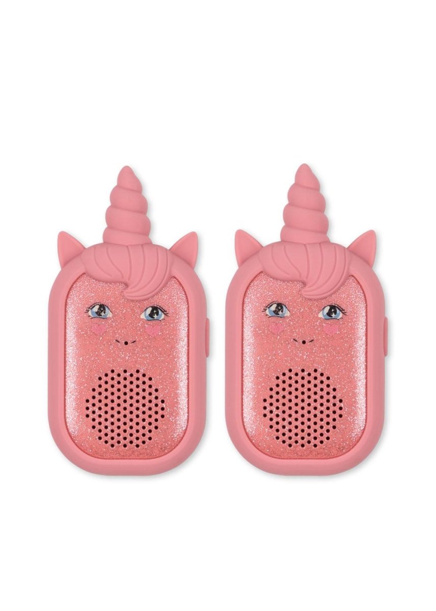 Walkietalkie-set voor geheime berichten tussen kleine vriendjes. Eenvoudig te gebruiken: zet de schakelaar aan om de radio in te schakelen, druk op de PTT-knop om te praten en laat los om het gesprek te beëindigen. Voorzien van een ingebouwde oplaadbare batterij.