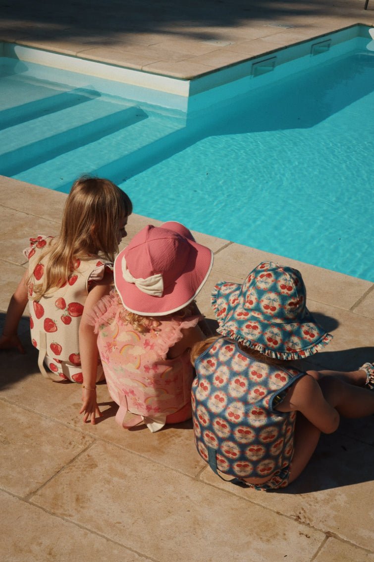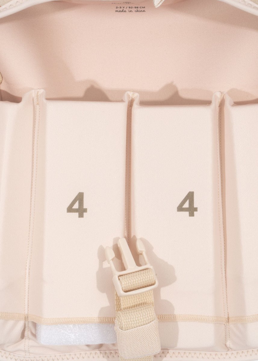 Vlot vest met glinsterend effect en franje op de schouders. Ontworpen met zowel een rits- als klittenbandsluiting en een veiligheidsriem met gesp in het kruis. Een drijfvest is het perfecte zwemaccessoire als je kleintjes net beginnen met spetteren. Het voegt een natuurlijk drijfvermogen toe en helpt ze zich op hun gemak te voelen in het water terwijl ze zelfstandig leren zwemmen. Onze drijfvesten zijn ontworpen met schuimrubberen sticks aan de binnenkant die kunnen worden aangepast aan de vaardigheden en behoeften van het kind. De drijfstokken kunnen gemakkelijk één voor één worden verwijderd naarmate je kind zijn zwemvaardigheden ontwikkelt. Verwijder de sticks altijd per twee, te beginnen met 1 & 1, dan 2 & 2 enzovoort tot je kind volledig aangepast is aan het zelfstandig zwemmen. Zodra het kind veilig en comfortabel in het water ligt, kunnen de drijfstokken allemaal worden verwijderd.