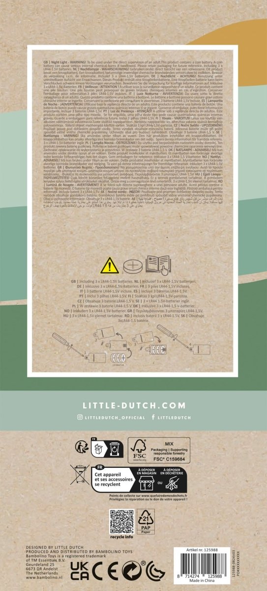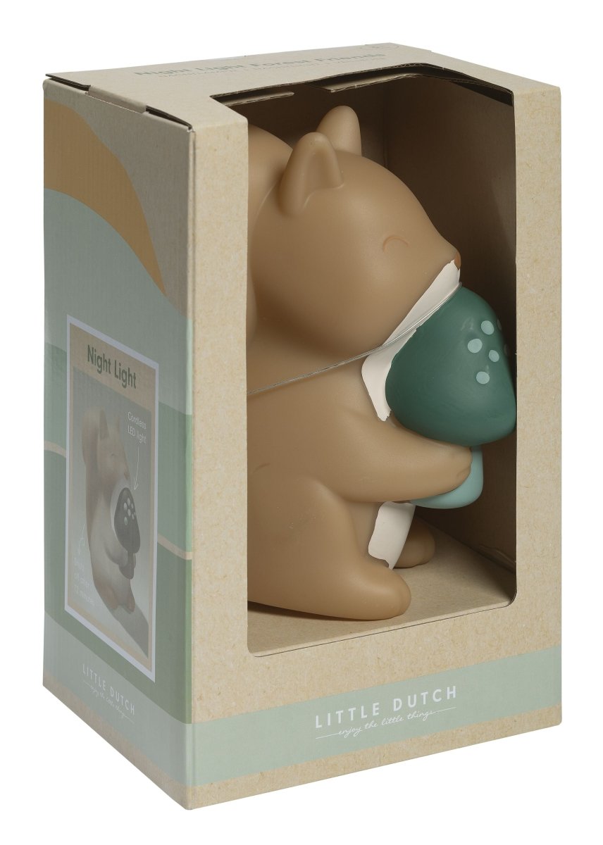 Maak kennis met de vrolijke Little Dutch eekhoorn! Het nachtlampje verspreidt een zacht licht in de kinderkamer. Het lampje gaat makkelijk aan of uit door de schakelaar aan de onderzijde van de lamp en gaat automatisch uit na 12 minuten om batterijen te besparen. Dit nachtlampje werkt op 3 LR44-knoopcel batterijen (inbegrepen).