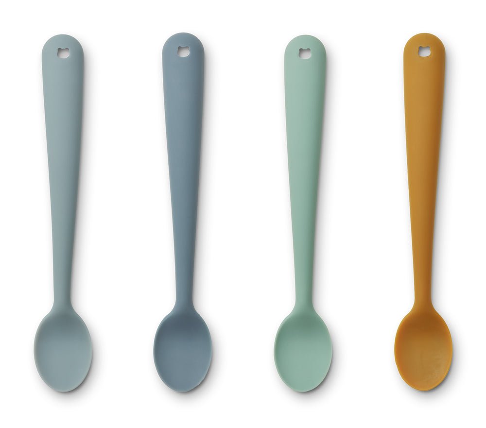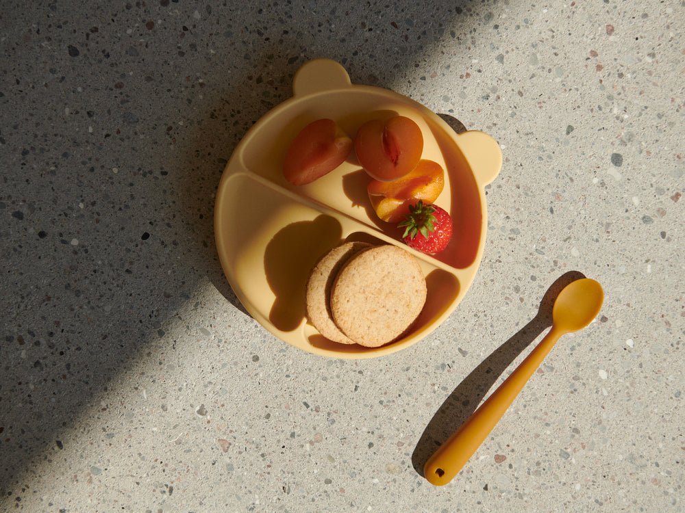 Perfecte vorm en grootte voor kleine handjes en mondjes. Ideaal om kinderen te leren zelfstandig te eten. Lichtgewicht. Duurzaam, zacht en langdurig materiaal. Vaatwasserbestendig.