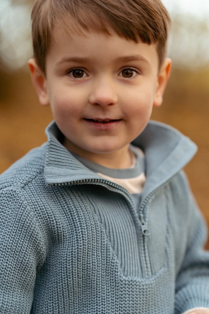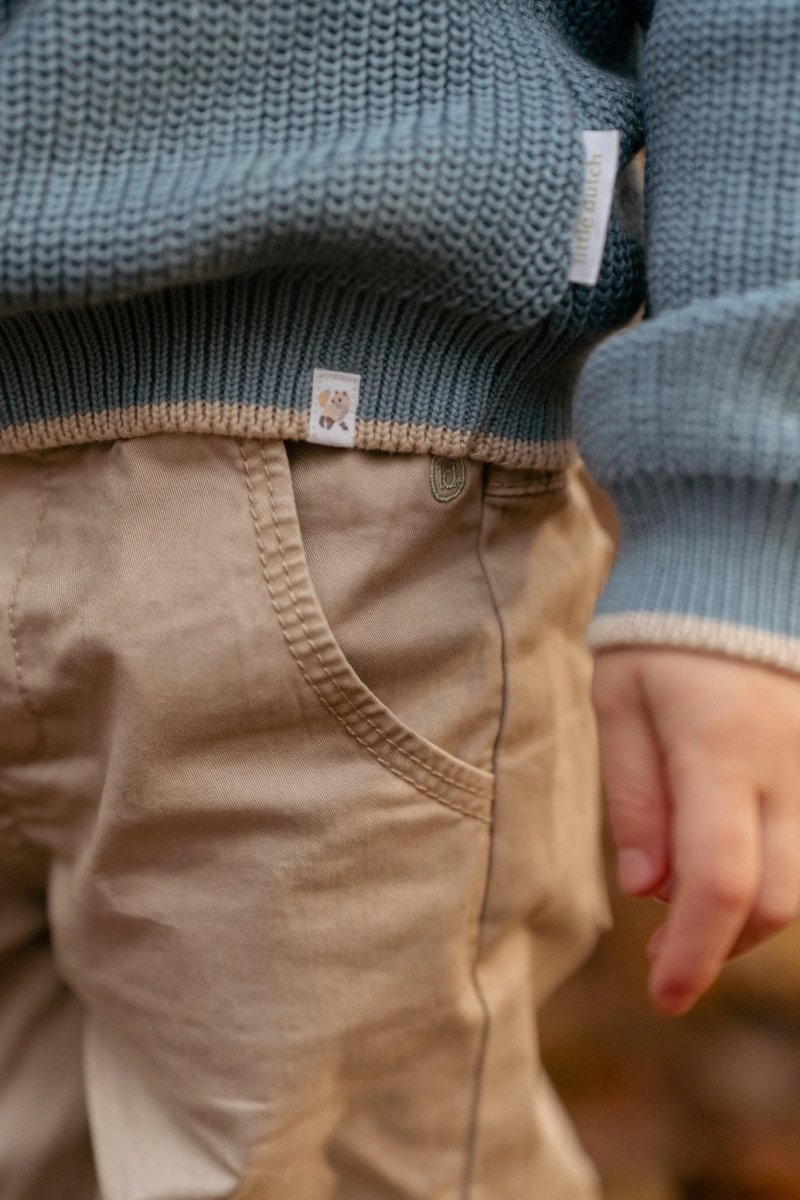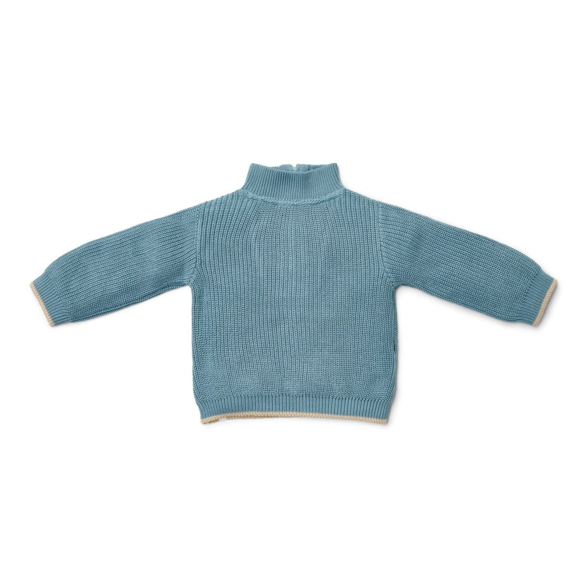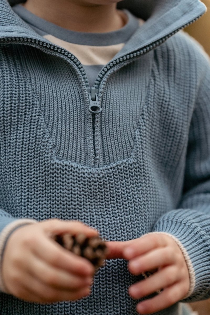 Warme gebreide trui, kraag met rits, contrast strepen aan de onderkant en mouwen, gemaakt van biologisch katoen, Oekotex gecertificeerd. 100% biologisch katoen