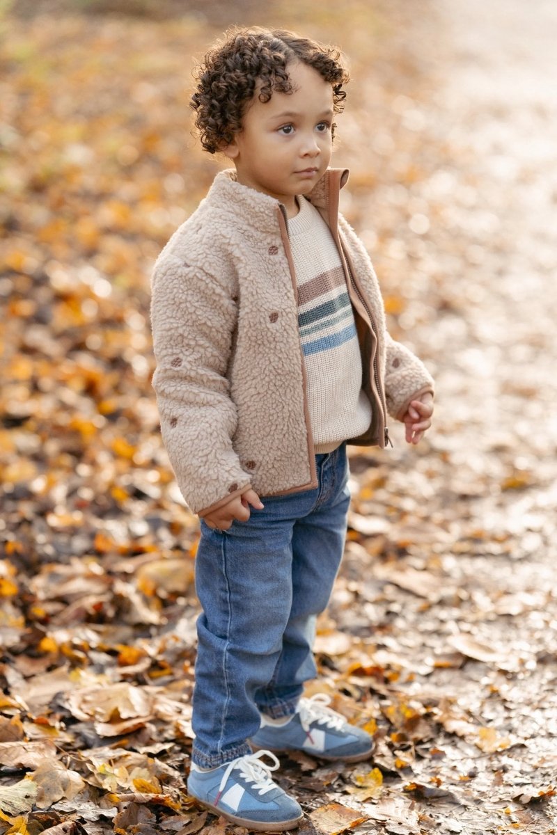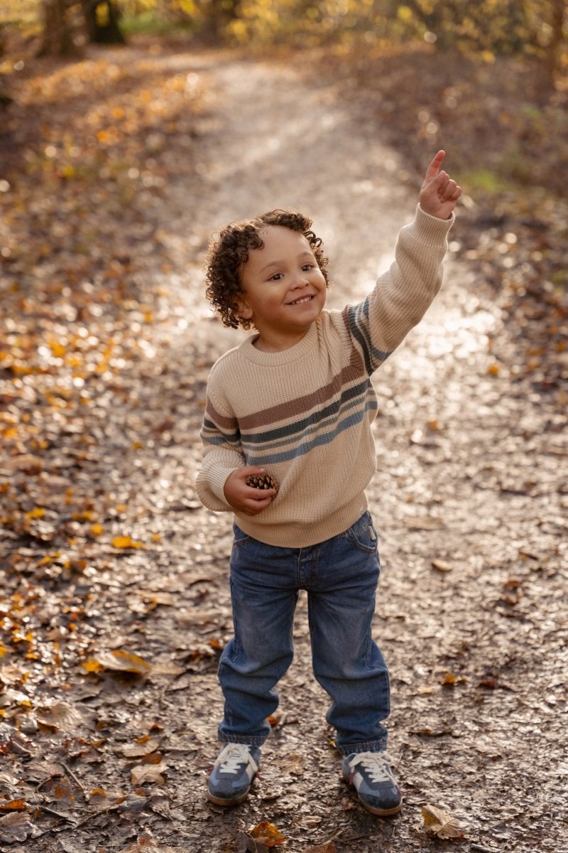 Deze warme gebreide trui is gemaakt van 100% biologisch katoen en voelt zacht en comfortabel aan. De voorkant is versierd met gekleurde strepen die zorgen voor een vrolijke en speelse uitstraling, terwijl de effen achterkant de trui veelzijdig maakt en gemakkelijk te combineren is met broeken in alle kleuren. Dankzij de Oeko-Tex certificering is dit een verantwoorde en huidvriendelijke keuze.