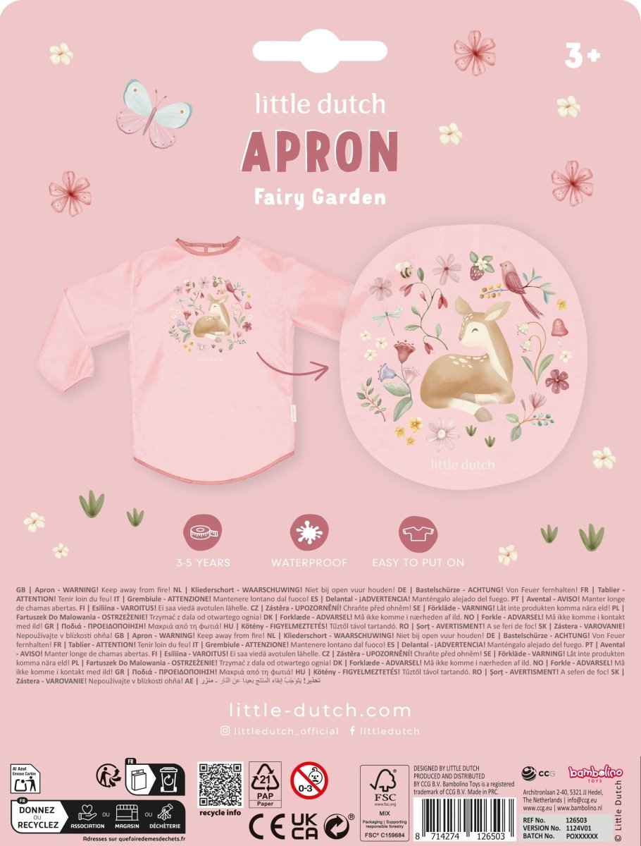 Een handig en vrolijk kliederschort van Little Dutch, perfect voor kleine kunstenaars die graag knutselen, schilderen of helpen in de keuken. Met het betoverende Fairy Garden-motief wordt elk creatief moment extra leuk!