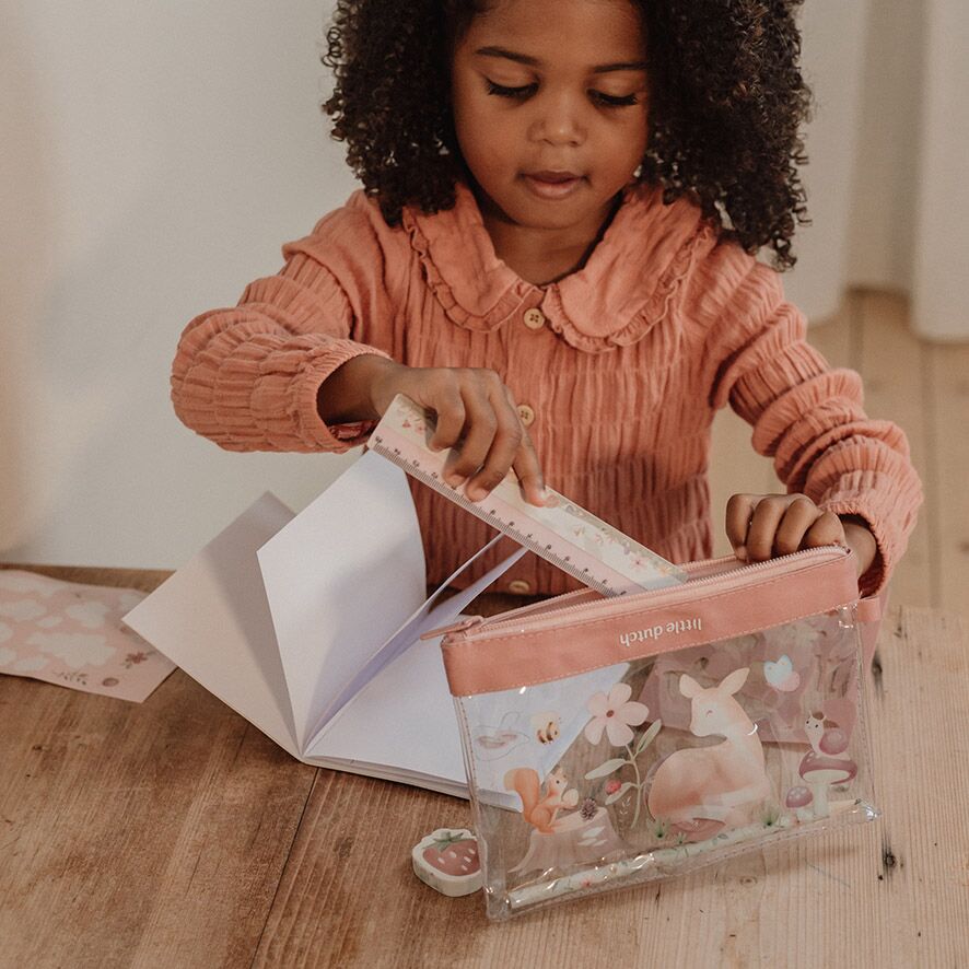 Deze schattige Little Dutch Fairy Garden stationary set is perfect voor kleine kunstenaars en schrijvers. Deze set bevat alles wat nodig is om creatief te zijn. Een notebook versierd met feeën en kleurrijke bloemen, een betoverend stickervel om creaties op te vrolijken, een stevige liniaal voor nauwkeurige lijnen, een zachte gum om fouten weg te vegen, een puntenslijper om potloden scherp te houden, een potlood voor schrijf- en tekendoeleinden, en een stencil voor het creëren van prachtige ontwerpen geïnspireerd op de natuur. Of het nu thuis, op school of onderweg is, deze set zal de verbeelding van elk kind stimuleren terwijl ze zich onderdompelen in de magie van de feeëntuin.