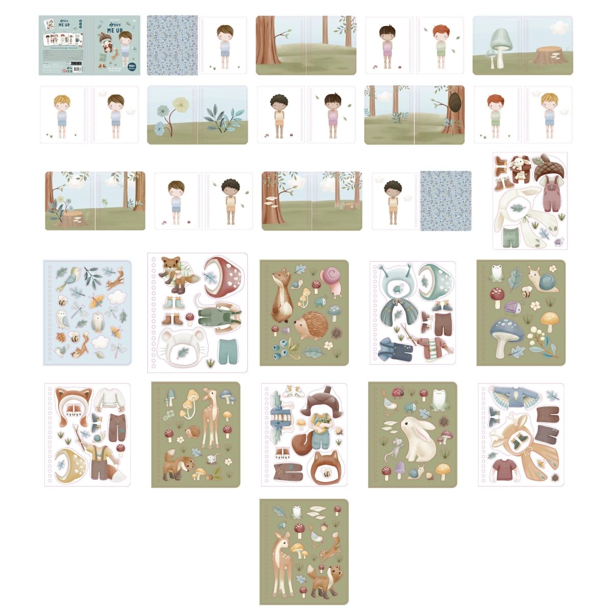 Wat trek jij aan vandaag? Met dit Jim & Friends Forest Friends aankleedboek bepaal jij de kleding van Jim en zijn vrienden tijdens hun avonturen in het bos. Het boekje bevat 24 pagina's met afbeeldingen van Jim en zijn vriendjes, evenals 12 pagina's met stickers van stoere uniformen en accessoires. Of je nu wilt dat Jim een stoere boswachter wordt of zijn vriendje een avontuurlijke ontdekkingsreiziger, jij hebt het voor het zeggen. Het boek is gemaakt van stevig karton met herkenbare Little Dutch ontwerpen en kleuren en heeft een handige ringband. Een ideale activiteit voor thuis en onderweg!