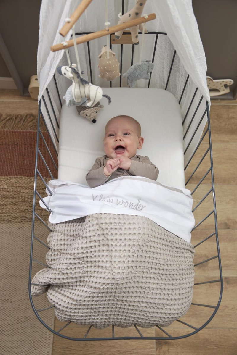 Het dekentje is verkrijgbaar in twee maten: een wiegdeken van 75x100 cm en een ledikantdeken van 100x150 cm. De wiegdeken kun je in de wieg, autostoel en/of in de kinderwagen gebruiken en de ledikantdeken is perfect voor in het ledikantje. Is je kleintje uit het ledikantje gegroeid? Dit dekentje is ook heerlijk als plaid op de bank of op bed!