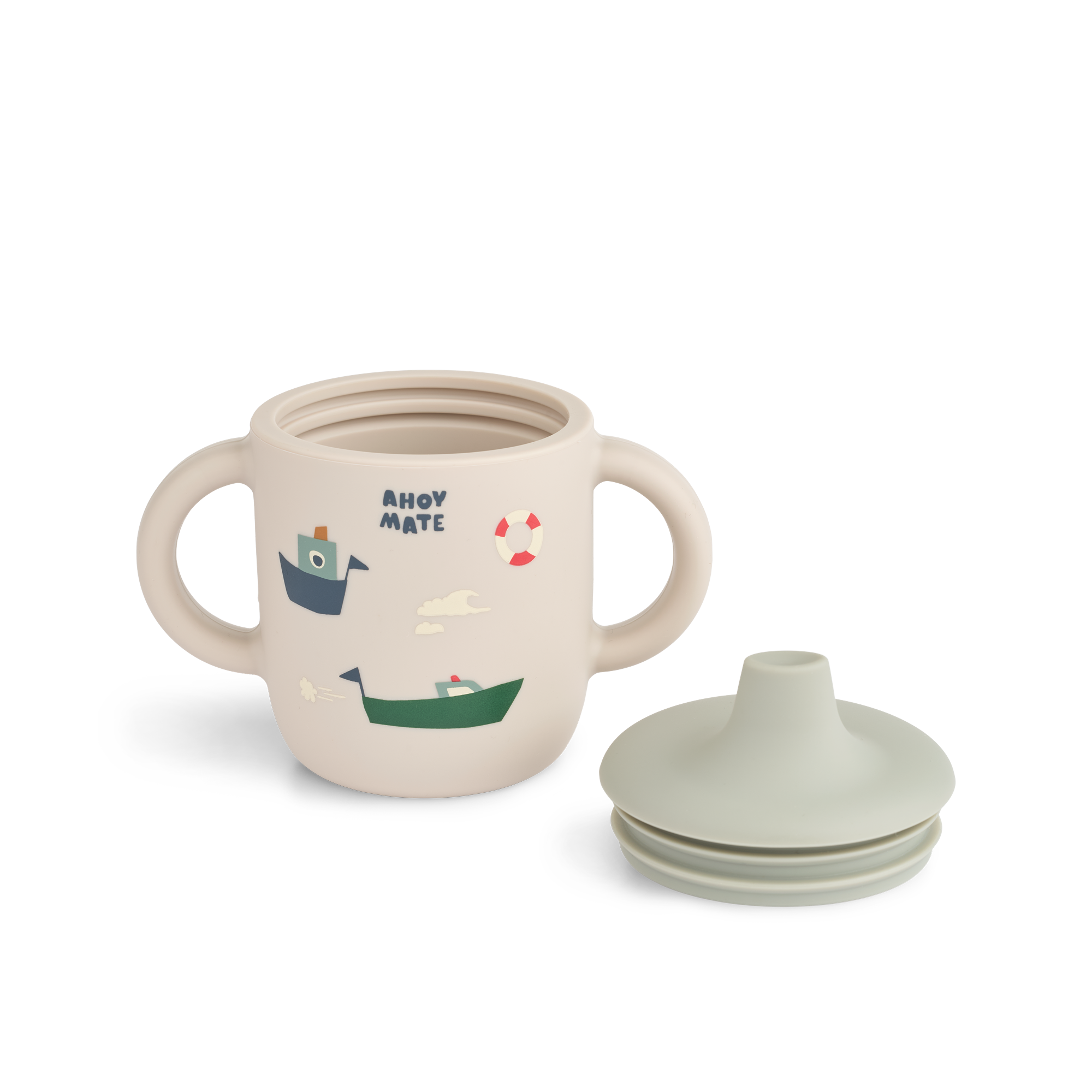 Deze zachte sippy cup van 100% siliconen is ideaal voor het oefenen van zelfstandig drinken. Lichtgewicht en ergonomisch ontworpen, perfect voor kleine handjes om vast te houden en te kantelen. Dankzij het verwijderbare deksel met kleine tuit bereidt het kind zich voor op het gebruik van een open beker.