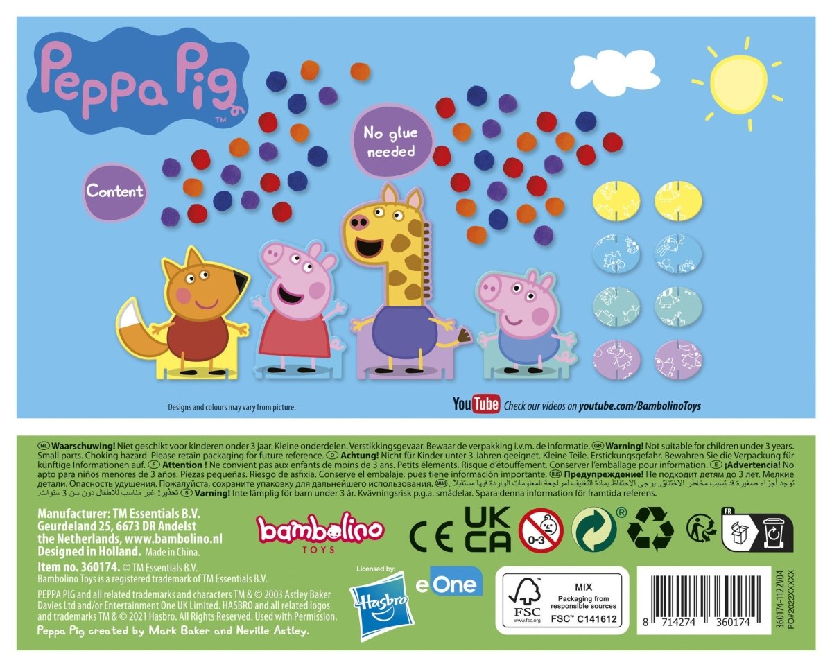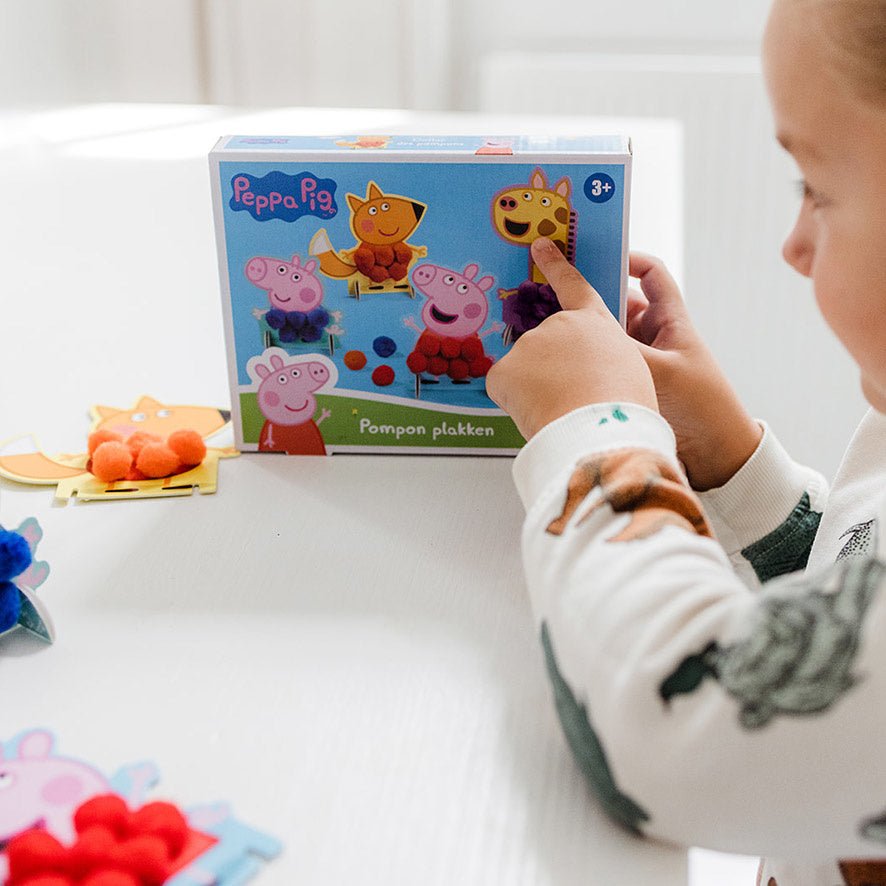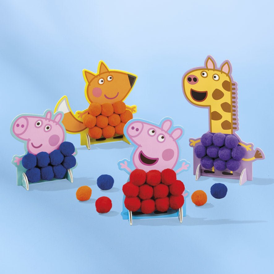 Versier deze leuke kaarten met pompom bolletjes om Peppa Pig en haar vriendjes extra mooi te maken. De kaarten zijn voorzien van lijm waardoor de bolletjes gemakkelijk blijven plakken. Als de kaarten klaar zijn kun je ze door de meegeleverde standaardjes aan de achterkant gebruiken als decoratie in huis, bijvoorbeeld in de kinderkamer. Een leuke activiteit voor de kleine kunstenaars.