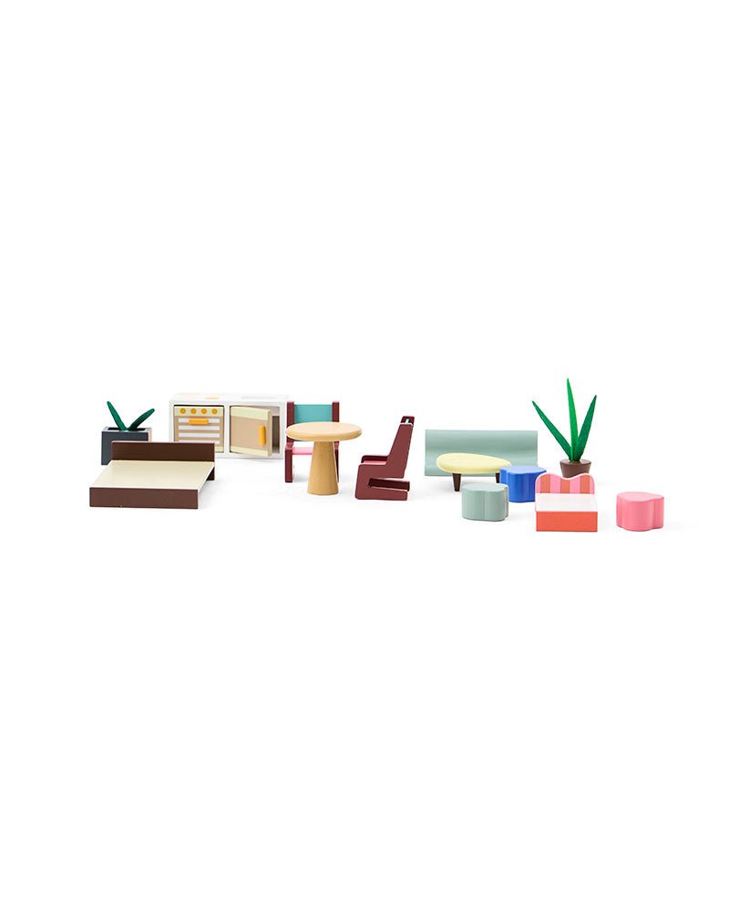 Het poppenhuis wordt geleverd met compleet meubilair: