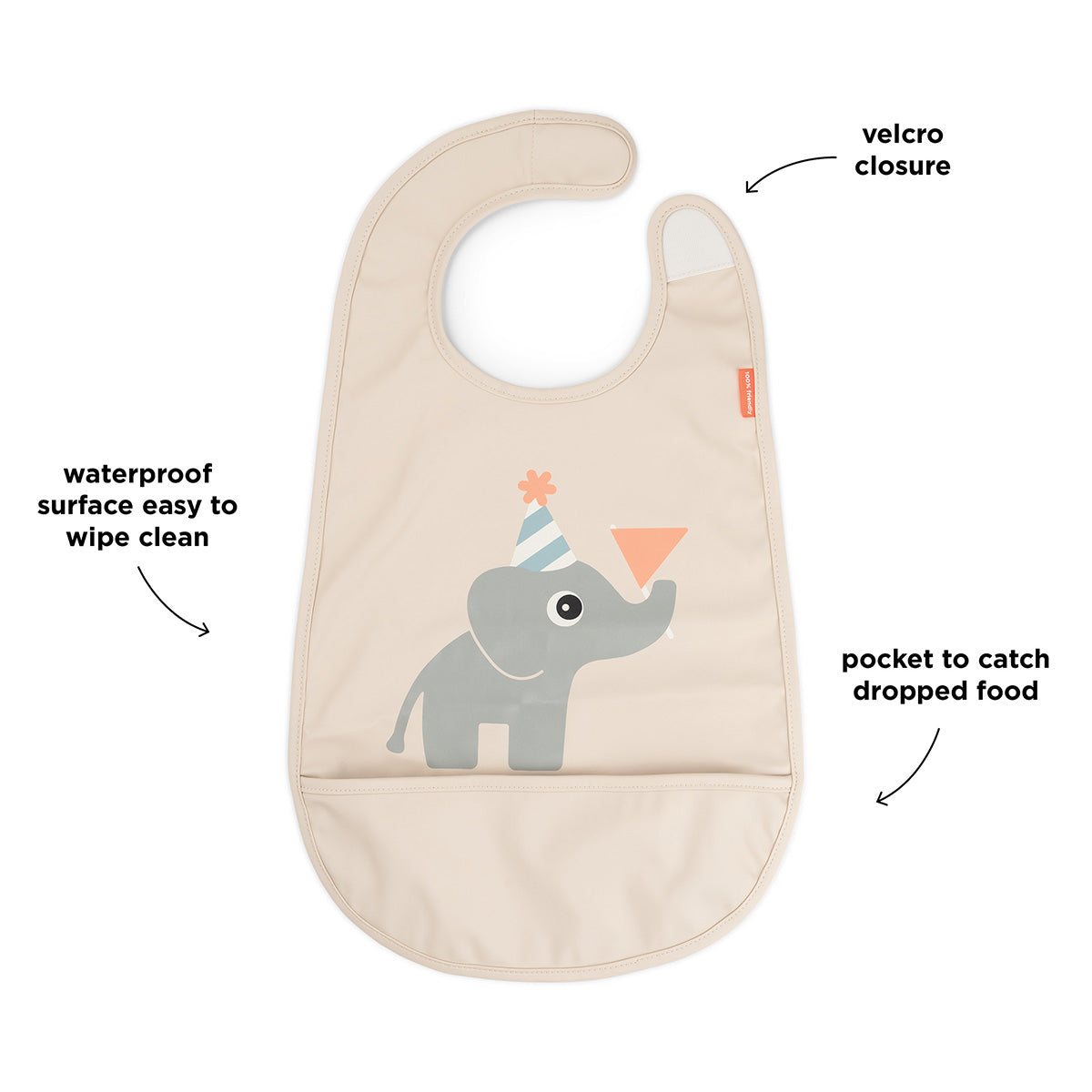 Bescherm de kleding van je kleintje tijdens het eten met dit slabbetje met klittenband in de kleur Celebration Sand. Gemaakt van 100% polyester met PU-coating, waterafstotend en makkelijk schoon te maken.
