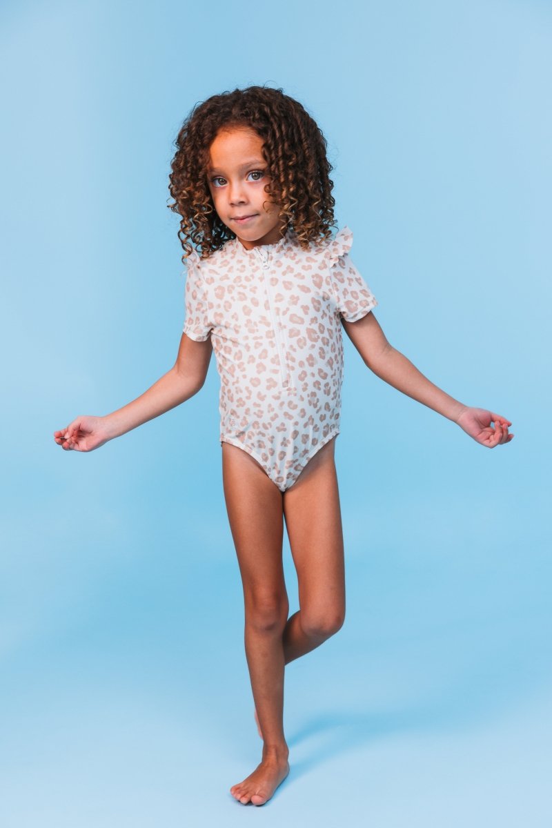 Swim Essentials Uv Zwempak Beige Leopard Rashguard Ruffle