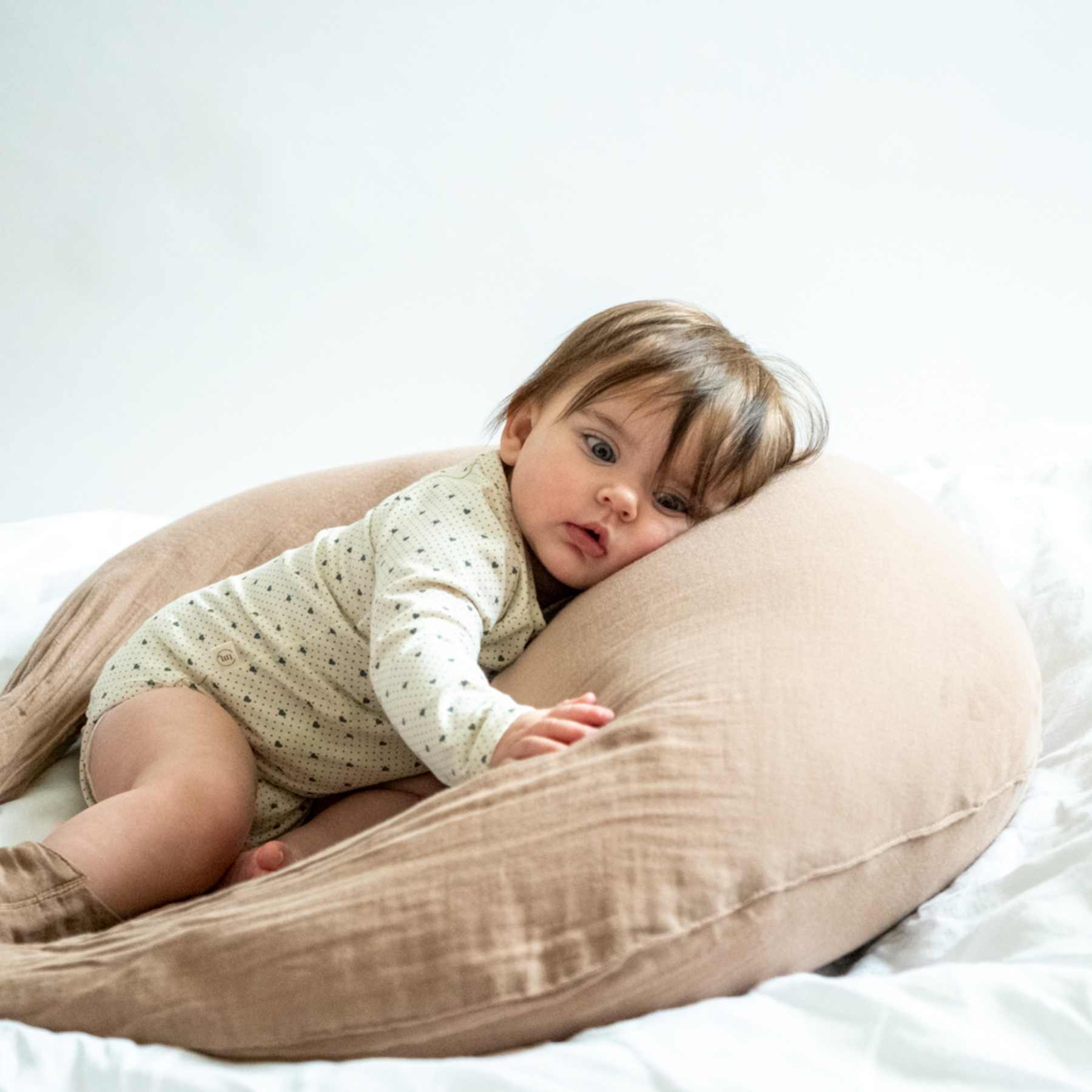 Dit mooie borstvoedingskussen is ontworpen voor aanstaande ouders, om ervoor te zorgen dat jij en je baby de beste start in het leven krijgen wanneer je borst- of flesvoeding geeft. Het borstvoedingskussen is innovatief en multifunctioneel, dus het enige waar jij je op hoeft te concentreren is genieten van het hechtingsmoment met je baby. We hebben twee mooie blaadjes aan het kussen bevestigd, zodat je altijd een knuffeldoekje voor je baby bij de hand hebt. Bovendien is het borstvoedingskussen zo ontworpen dat het perfecte ondersteuning biedt, zodat je op een handige hoogte en in een handige positie kunt liggen terwijl je je kind borst- of flesvoeding geeft. We hebben de uiteinden van het kussen langer gemaakt - knoop ze aan elkaar en je hebt een klein stoeltje. Je kunt het ook om je middel binden, dan zie je hoe comfortabel een borstvoedingskussen kan zijn. Als je klaar bent met borstvoeding geven, kun je het borstvoedingskussen gebruiken als hulpmiddel bij het buikliggen of als kussen om de kleintjes te leren hoe ze zonder steun rechtop moeten zitten.