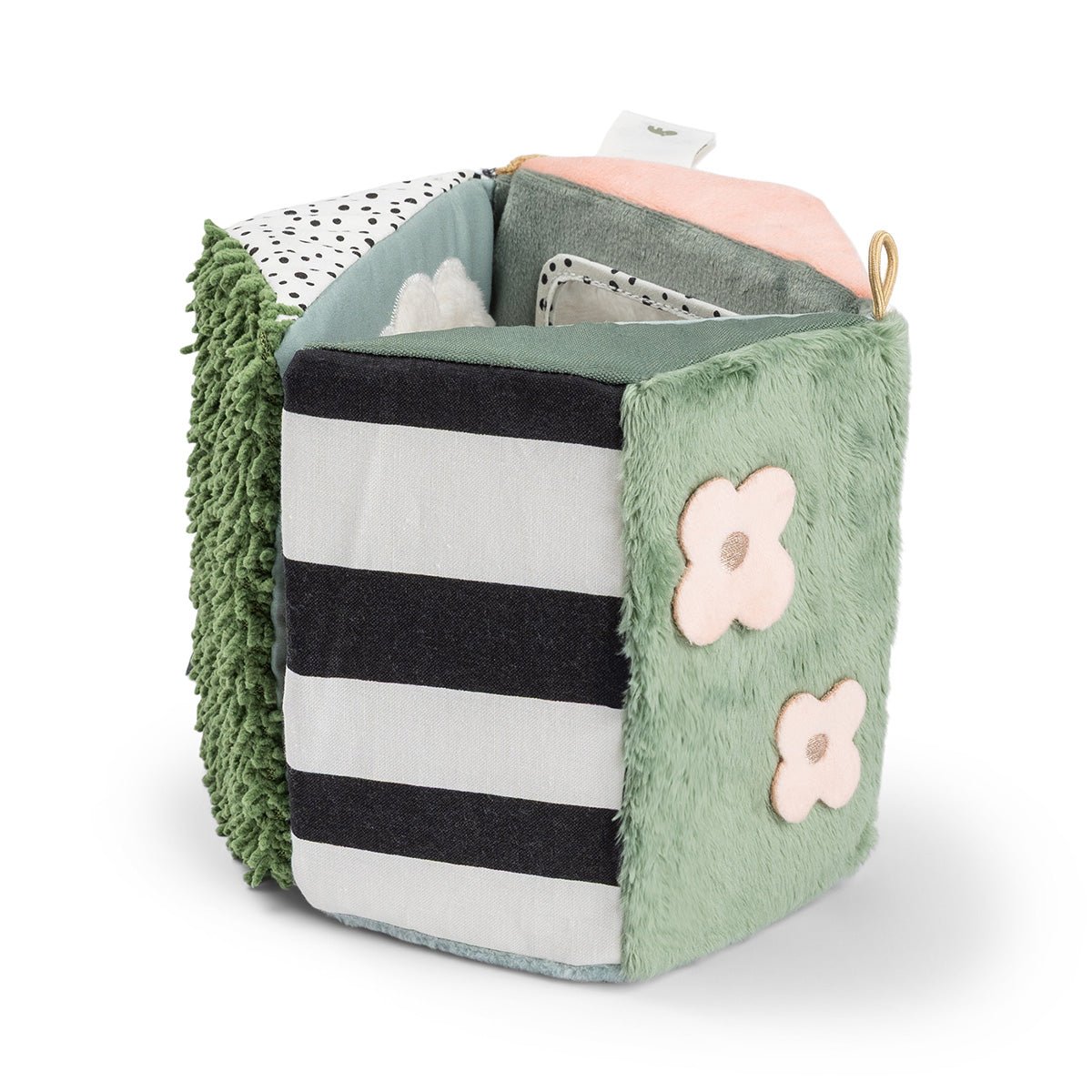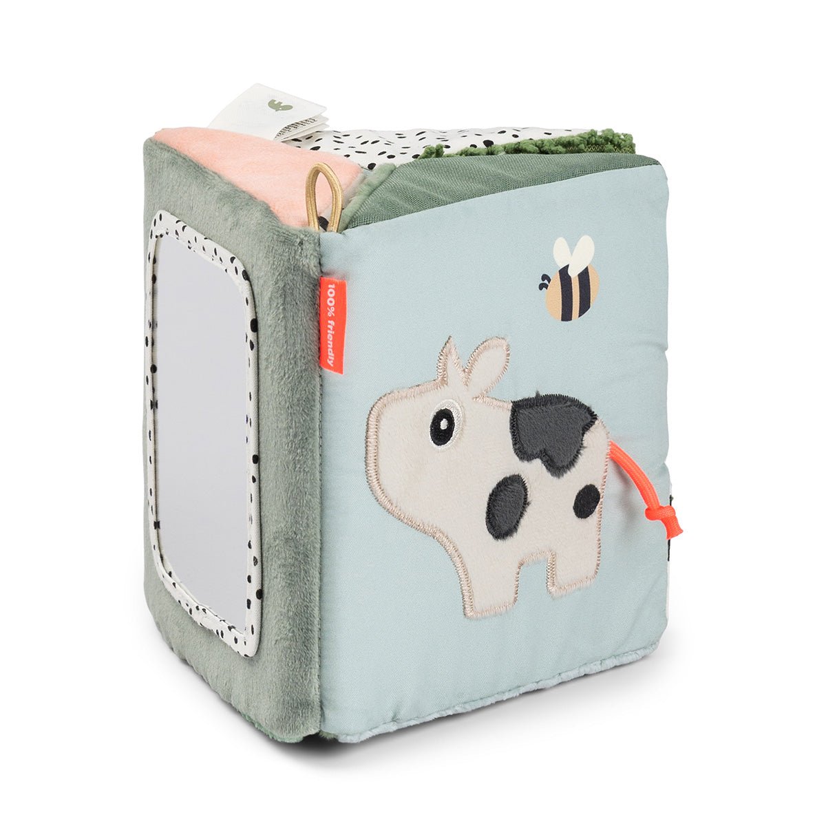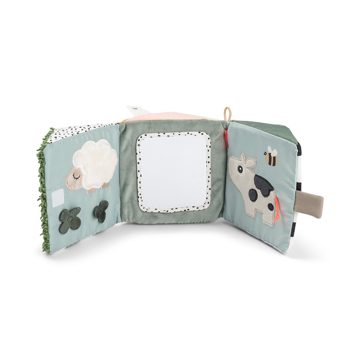 Een fijne en speelse spiegel die kleintjes uitnodigt om te kijken, voelen en ontdekken. Perfect voor tummy time, in de box of op een speelmat. De spiegel kan rechtop staan, worden neergeklapt of opgehangen, zodat je hem makkelijk meeneemt en overal kunt gebruiken. De vrolijke prints, zachte stoffen en het veilige spiegeltje stimuleren de visuele en zintuiglijke ontwikkeling.