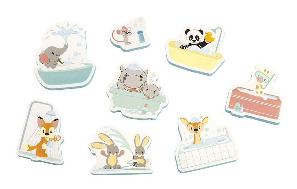 Lekker in bad spelen wordt nog leuker met de vriendjes van Studio Circus. Deze foamfiguren blijven plakken op de badrand of tegelwand en drijven in het water. Na het spelen gemakkelijk op te bergen in het netje dat met de zuignappen aan een glad oppervlak kan worden vastgemaakt.