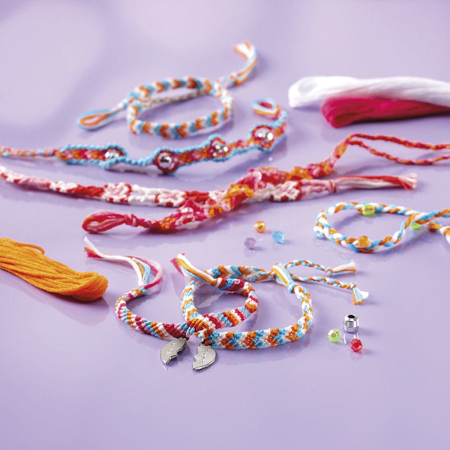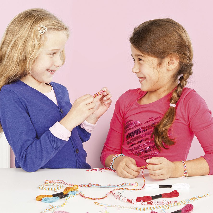 Maak vriendschapsarmbandjes in allerlei kleuren met extra kraaltjes en bedeltjes. Inhoud: draad in diverse kleuren, best friends bedels, kralen en een gebruiksaanwijzing.